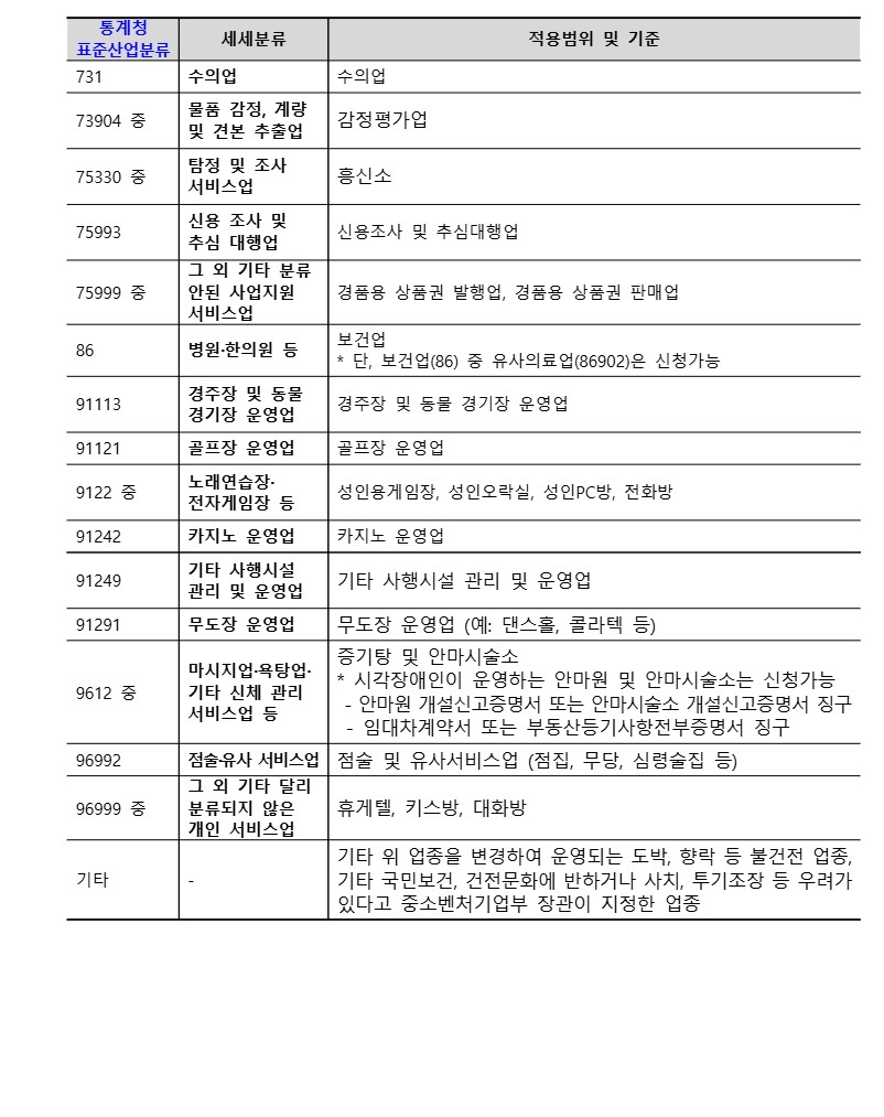 한시적 지원금인 소상공인 배달 택배비 지원사업 제외업종입니다. 확인하시고 아래의 업종이 아니라면 빨리 신청하세요.